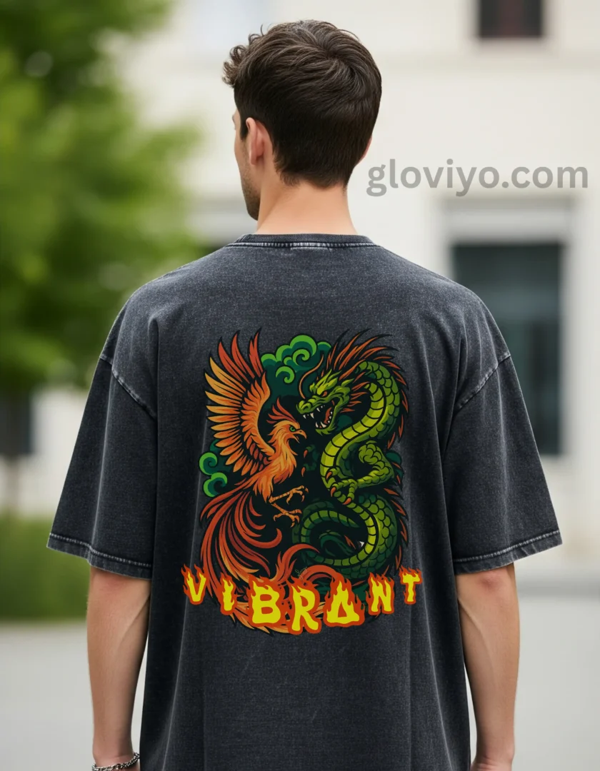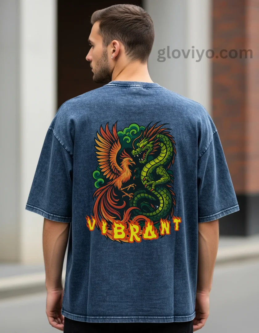 Introducing the GLOVIYO Phoenix Dragon Unisex Oversize Acid Wash T-Shirt—a perfect fusion of comfort, durability, and timeless style. Key features include: